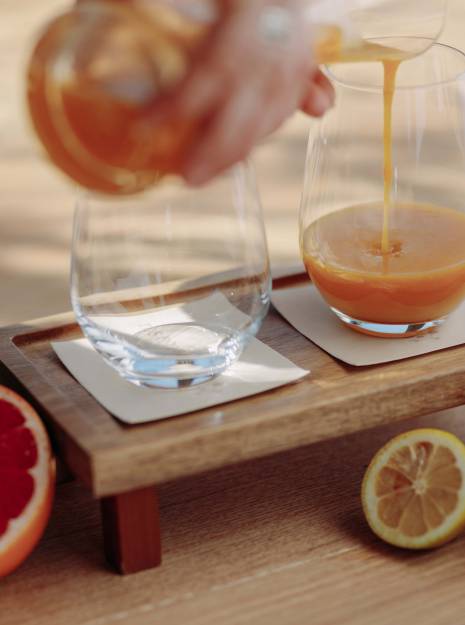 - als Mittag- & Abendessen je eine frisch bereitete mineralienhaltige Gemüsebrühe sowie verschiedene hochwertige Obst- und Gemüsesäfte